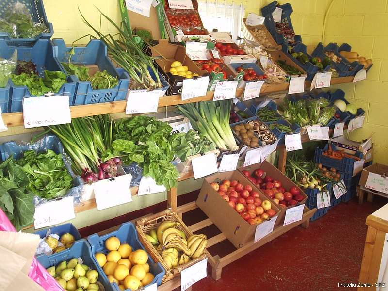 - obchod s biopotravinami. Predáva sa v ňom zelenina, ovocie a ďalšie produkty a výrobky, ktoré sú dopestované alebo vyrobené na biofarme, ale aj iné druhy biopotravín (suché, konzervované, mliečne a sójové výrobky...), o ktoré majú stabilní zákazníci záujem. Zaujímavosťou je možnosť čerstvého natrhania biozeleniny priamo zo záhonov, kde sa pestuje, podľa výberu zákazníka.