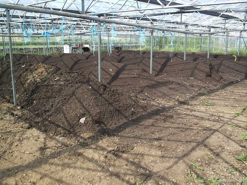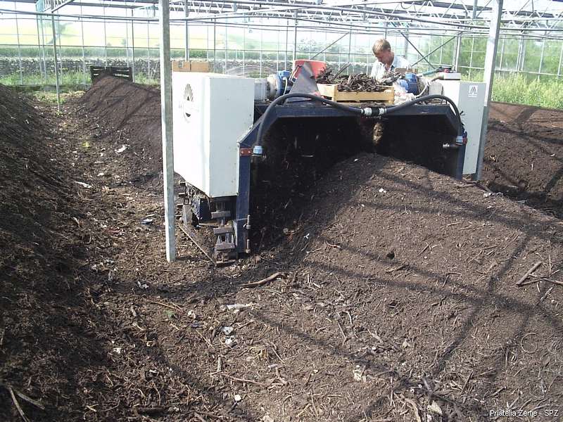 Na kompostovanie sa využíva jeden zo skleníkov. Tým sa podarilo zabezpečiť celoročnú prevádzku. Plocha nie je vodohospodársky zabezpečená a dokonca nie je ani spevnená. Všetok materiál, ktorý je určený na kompostovanie, je drvený na drviči. Už do drviča je vkladaný podľa vopred určenej surovinovej skladby v pomere odpovedajúcom jeho kvalite zohľadňujúc obsah dusíka, organických látok a vlhkosť jednotlivých surovín.