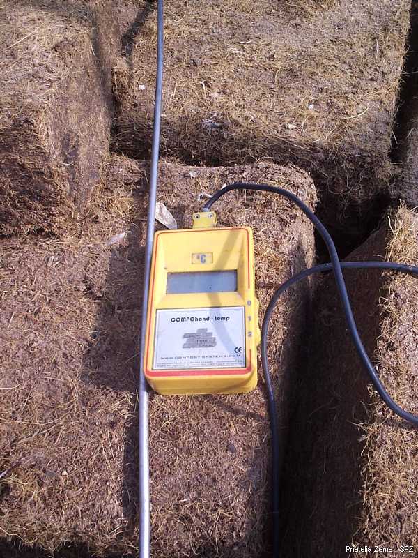 Na farme už vyskúšali viacero spôsobov kontroly a optimalizácie procesu kompostovania. Nakoniec si vytvorili a používajú vlastnú metódu. Nakoľko kompostujú všetok bioodpad vznikajúci na farme vrátane burín, je podľa slov pracovníka, ktorý ma na starosť kompostovanie, nevyhnutné zabezpečiť pri rozkladnom procese teplotu v zakládke 60 až 70ºC najmenej po dobu 7 dní. To by malo zabezpečiť zničenie všetkých patogénov a klíčivosti semien v komposte. Na kontrolu teploty v zakládke sa používa digitálny teplomer s možnosťou uchovania nameraných dát.