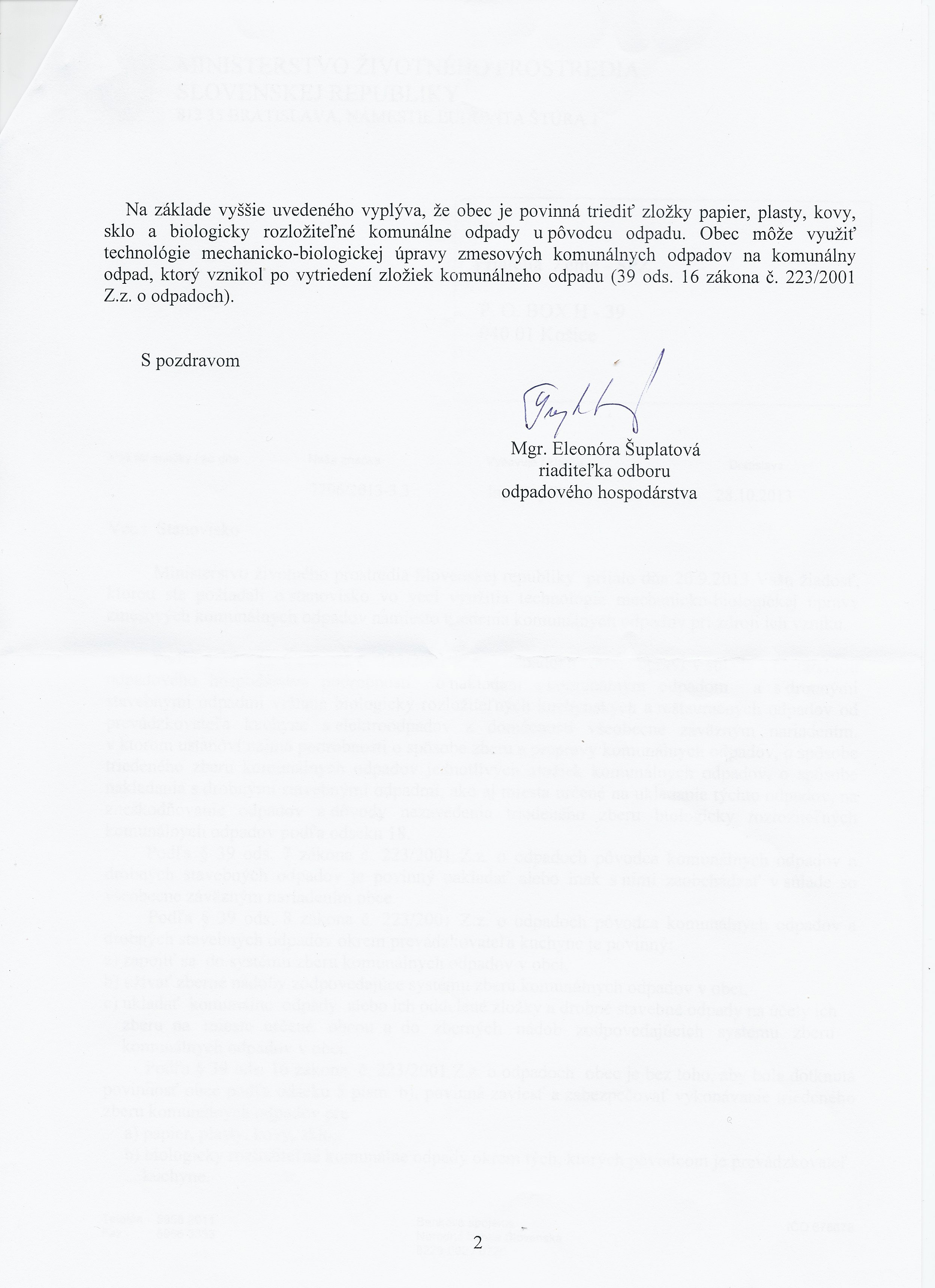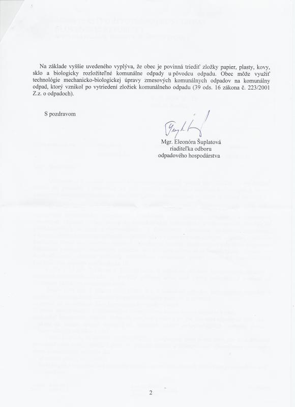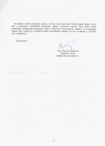- k výraznému zníženiu množstva zložky biologicky rozložiteľných odpadov vo zvyškovom odpade s cieľom obmedziť tvorbu skleníkových plynov a škodlivých výluhov pri skládkovaní,