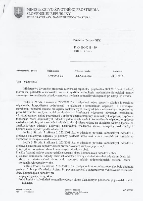 Rovnako aj analýzy MŽP ČR hovoria v prospech metódy MBÚ oproti spaľovniam odpadov. Analýzy ukázali, že stratégia, ktorá kombinuje intenzívne triedenie (a na to nadväzujúca recyklácia a kompostovanie), MBÚ a prevenciu, vyžaduje v Českej republike celkové investície o 1,6 až 6,5 miliardy Kč nižšie (investícia 10 až 14,9 mld. Kč) ako koncepcia, ktorá by sa opierala o stavbu ďalších spaľovní odpadov (investícia 16,5 mld. Kč). Rovnako aj prevádzkové náklady budú pri ekologickom modeli nižšie o 1,2 – 1,7 mld. Kč za rok v porovnaní so spaľovaním odpadov. [3]