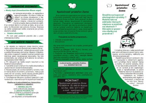 Leták A4 zložený na tretiny, plnofarebný na recyklovanom papieri, rok vydania 2002.